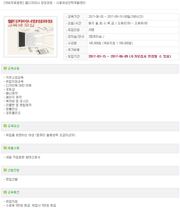 [국비무료훈련] 웹디자이너 양성과정 - 시흥여성인력개발센터(http://www.shwomen.or.kr/)