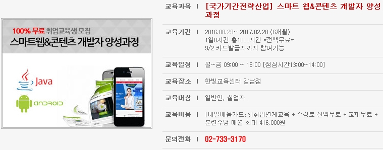 [한빛교육센터] 스마트 웹&앱 콘텐츠 개발자 과정